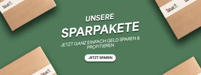 Unser Sortiment umfasst händisch von uns zusammengestellte Sparpakete mit Tabak zum Drehen und Stopfen (Tabak-Sets), Pfeifentabak (Pfeifentabak-Sets), Zigarren und Zigarillos (Zigarren/Zigarillos-Sets) sowie Filterhülsen (Hülsen-Sets). On top steckt vieles in ihnen, was Raucher sonst noch brauchen: Nützliches für Zigaretten, Pfeifen, Zigarren und Zigarillos. Mit dem passenden Sparpaket kommt jeder Raucher auf seine Kosten. Anfänger schätzen es, dass sie mit einer einzigen Bestellung alles beisammen haben. Kenner lassen sich gerne von LED-, Stab-, Sturm- und Clipper-Feuerzeugen inspirieren