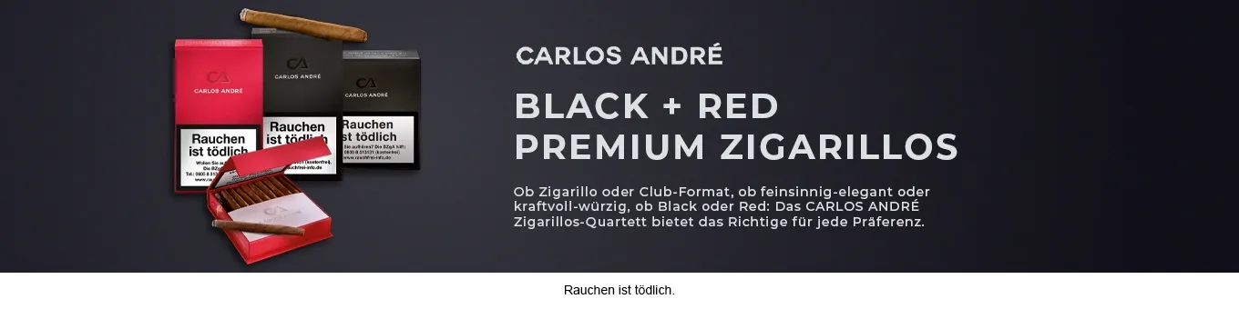 Carlos Andre Zigarillos – die Premium-Wahl für echte Genießer. Mit über 150 Jahren Tabakexpertise bietet Carlos Andre endlich auch zwei exklusive Zigarillos-Linien: Red für würzige Intensität und Black für sanfte Eleganz. Jetzt zum besten Preis kaufen und dominikanische Premium-Qualität in jedem Zug erleben!
